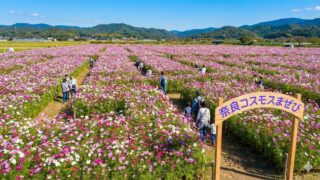 秋の奈良といえば、紅葉や鹿だけでなく、一面に咲き誇るコスモス畑も見逃せません。なかでも注目を集めているのが、花の中を実際...